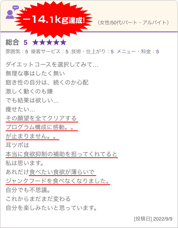 今まで複数のダイエットにチャレンジして失敗をしてしまったという方が、人生の最後のダイエットとして挑戦し成果を出し喜んでいます。