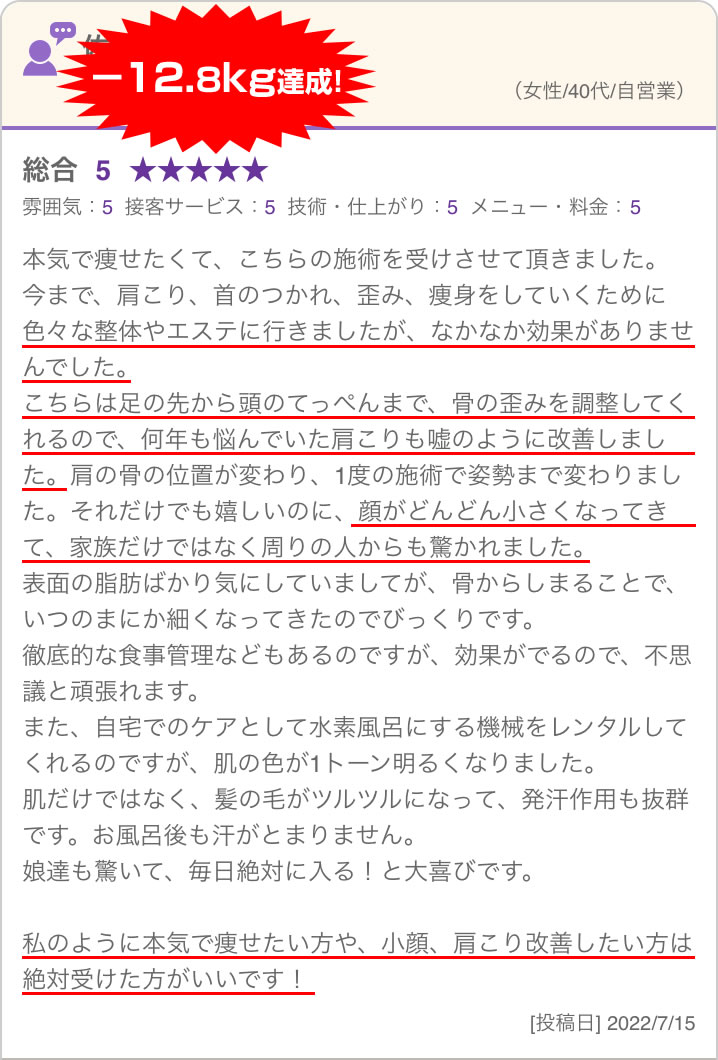 独立してからもダイエットに関しては多くの方に喜んでもらい遠方からもお客様に来て頂けるようになりました。