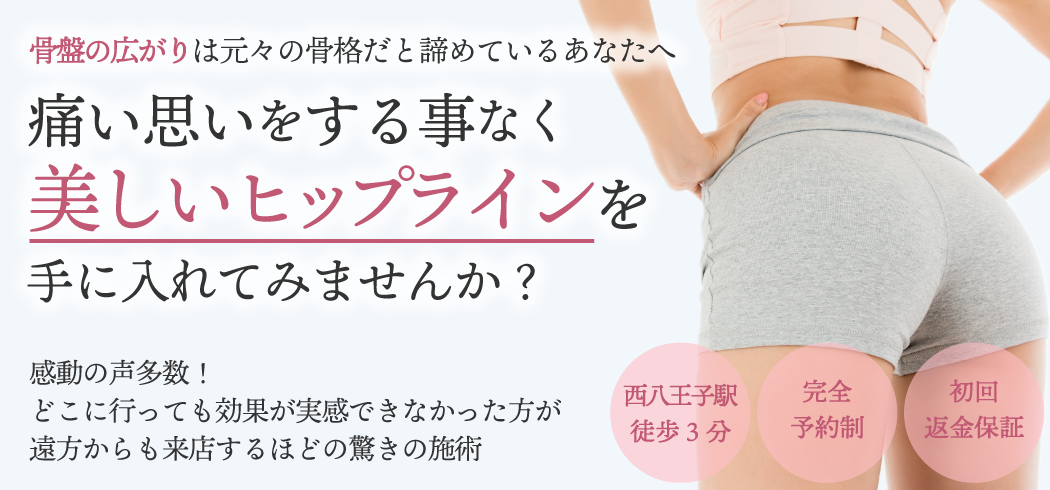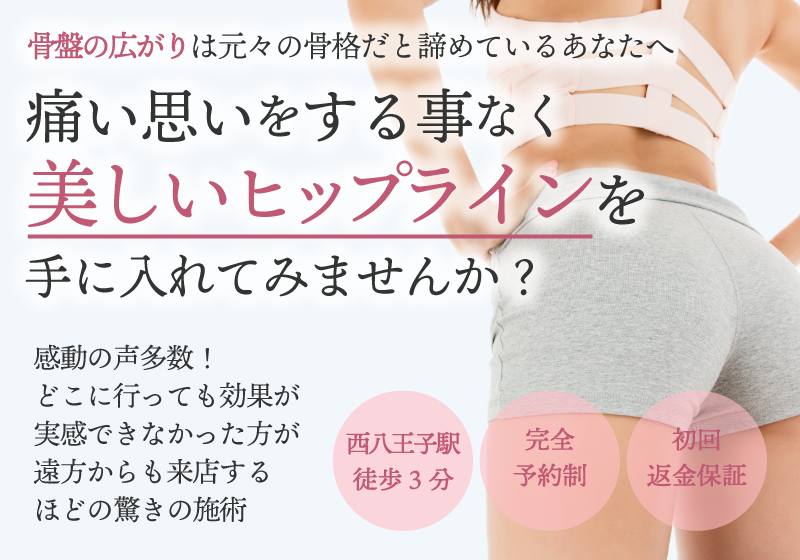 骨盤の広がりのほとんどの原因は、日々の生活習慣やお尻を締める力の衰えなどによるものです。
