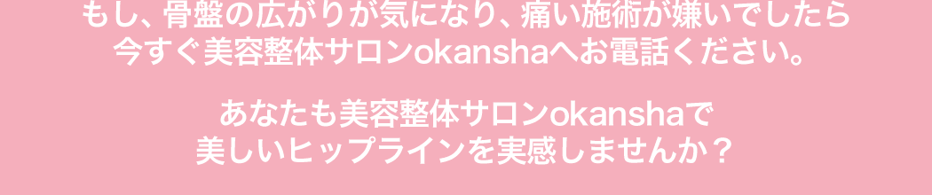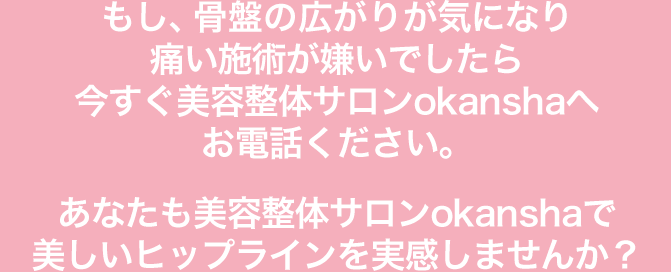 もし骨盤の広がりでお悩みでしたら今すぐ美容整体サロンokanshaにご相談ください。
